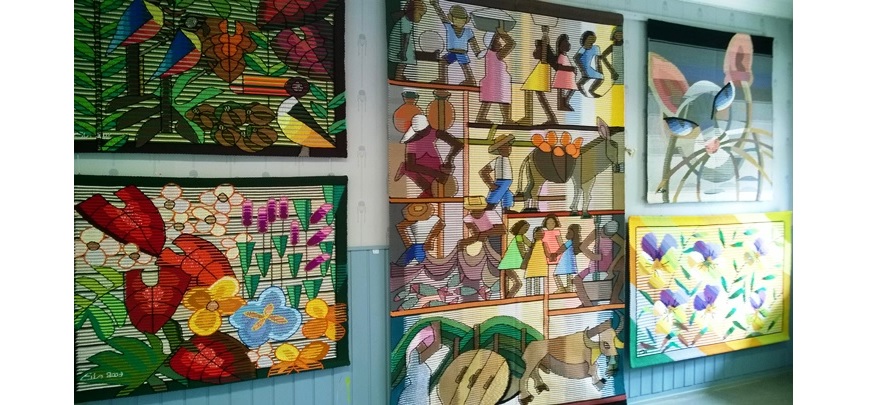 Heinäkuussa oli vuorossa myös Vaalan asemalle avattu kuvakudostaitelija Eila Ampulan näyttely (kuvassa). Vaalan aseman on herättänyt uuteen kukoistukseen vanhoista asemista kiinnostunut Sanna Telinkangas. Vaalassa Oulujärven rannalla on monta vierailun arvoista taidekohdetta. (www)