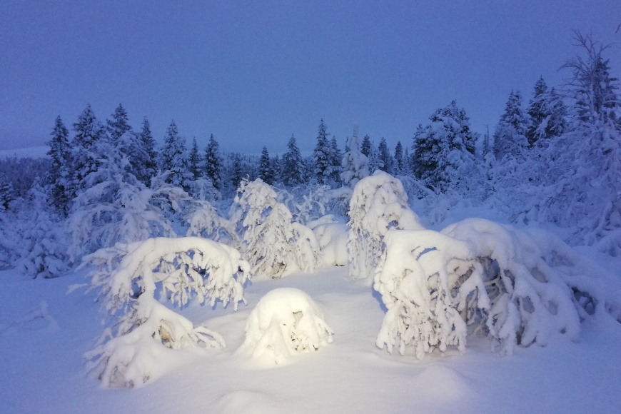 Afterwards, they took a walk on the frozen lake Tuulisjärvi. The weather was nice and the views magnificent! The darkness comes early at the polar night, and they had to leave the lake already at 13:30 pm, when it got dark.
