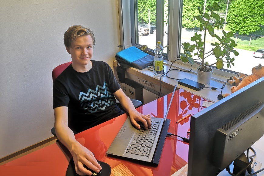 Akseli Järvinen Järvenpäästä aloitti KivaaTekemistä.fi -palvelussa kesätyön 1.6.2020. Kuva: KivaaTekemistä.fi