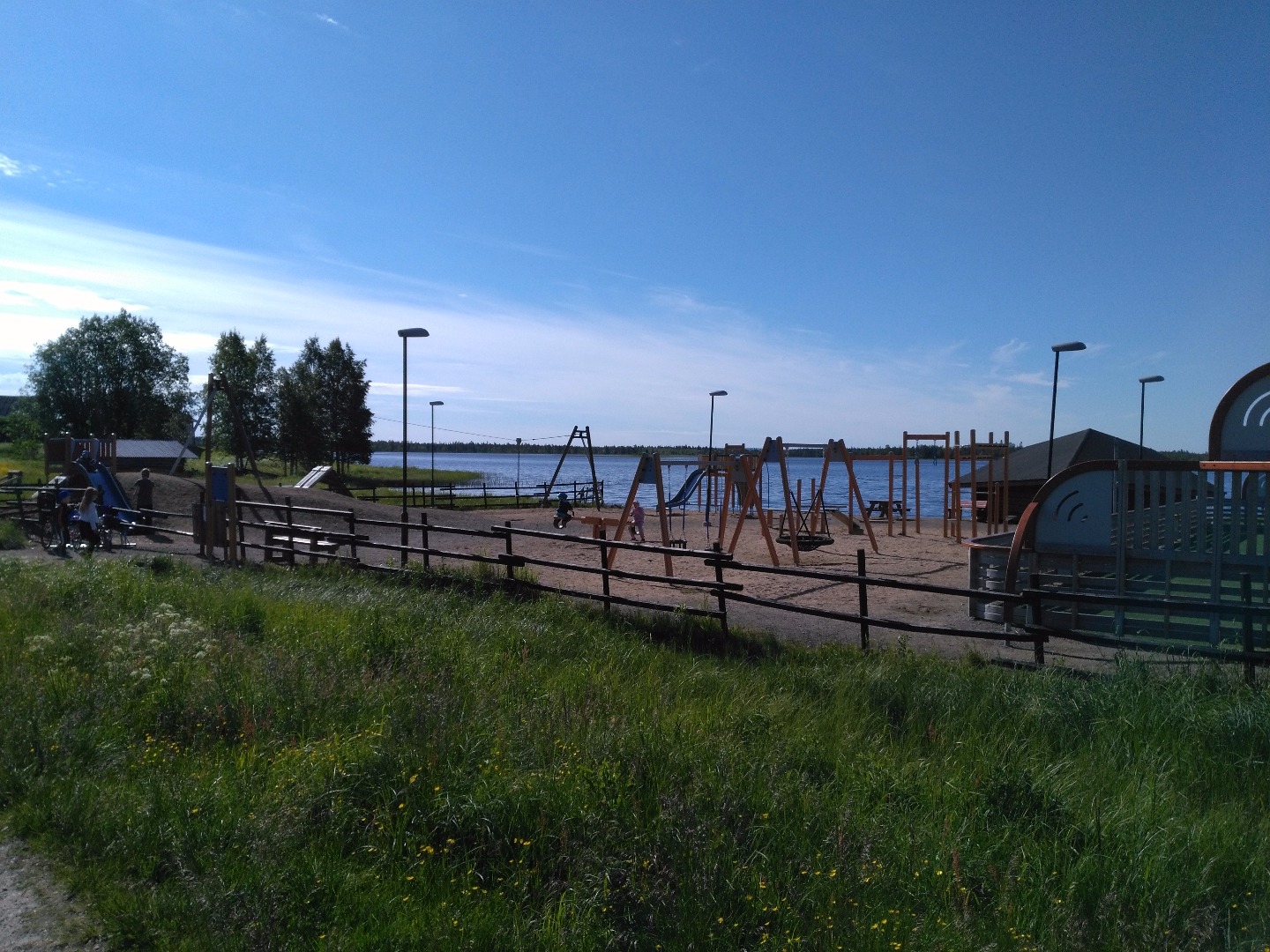 Länsi-Lappiin saapuvalle kuvassa näkyy viihtyisä Ylläsjärven leikkipaikka ja uimaranta Eelin kaupan edustalla Kolarissa. Ylläsjärveltä pääset nykyään kätevästi maisematietä Yllästunturin yli Äkäslompoloon, jossa puolestaan sijaitsee kuuluisa Jounin kauppa ja kesän uutuutena ISO poro kaupan pihalla!