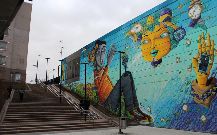 Works of MRDheo (left) and Salla Ikonen at Myyrmäki Station, Vantaa. Photo: LikeFinland.com