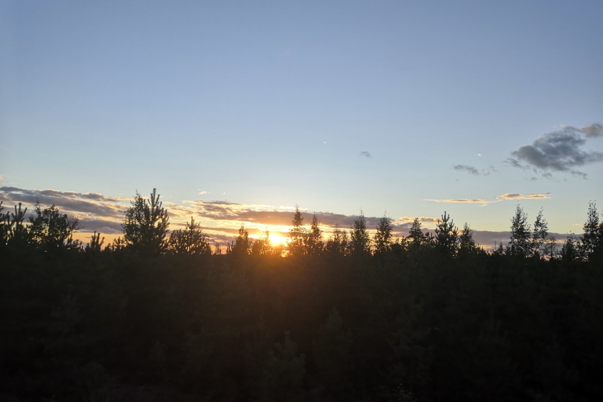 Auringonlasku Sipoon metsissä iltarasteilla to 10.9. (Keski-Uusimaa-rastit, Bastmossen, järj. Keravan Urheilijat). Kuva: KivaaTekemistä.fi